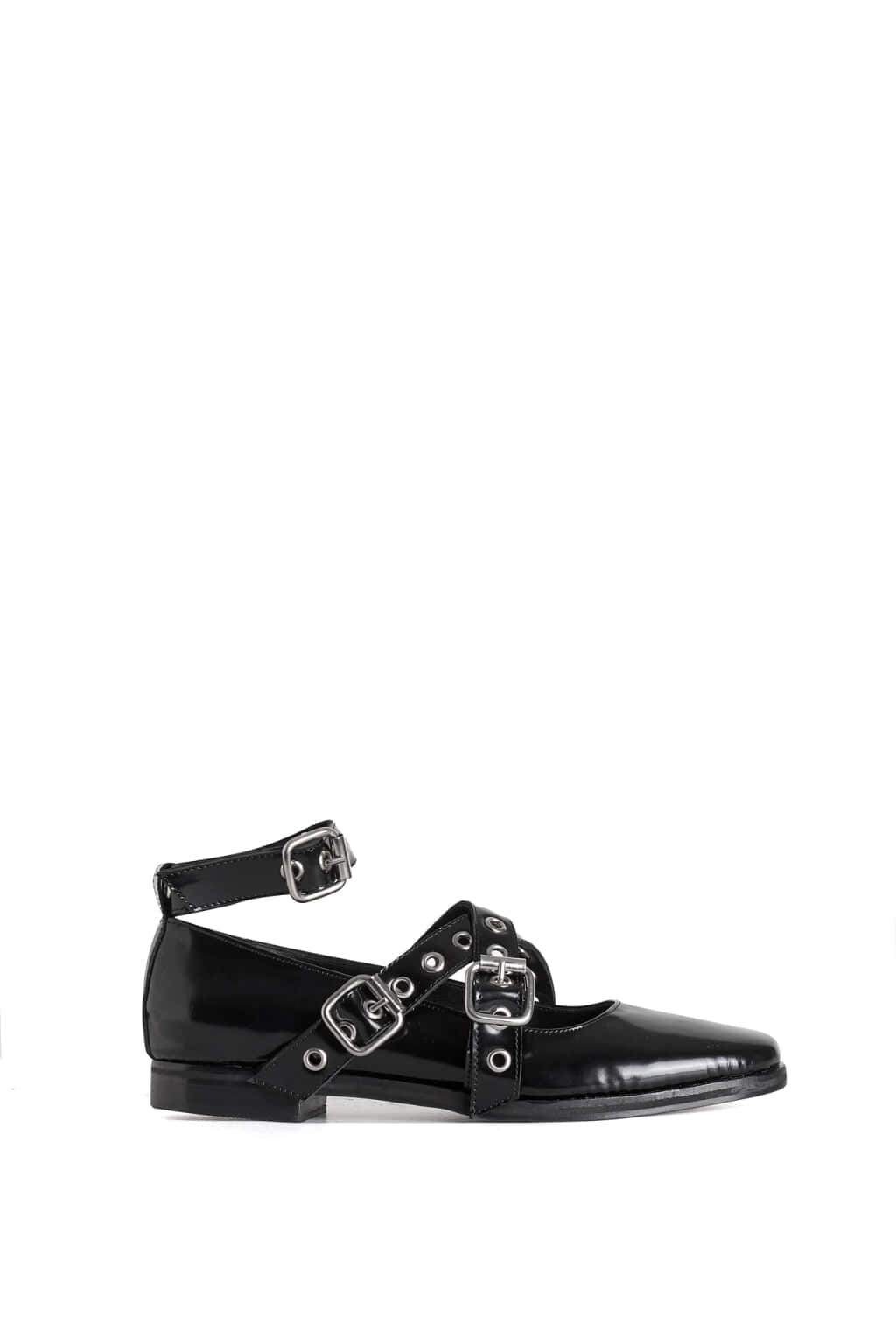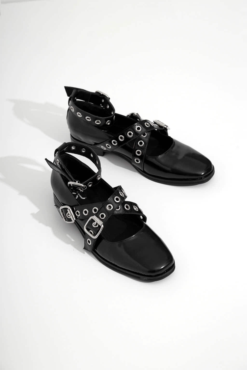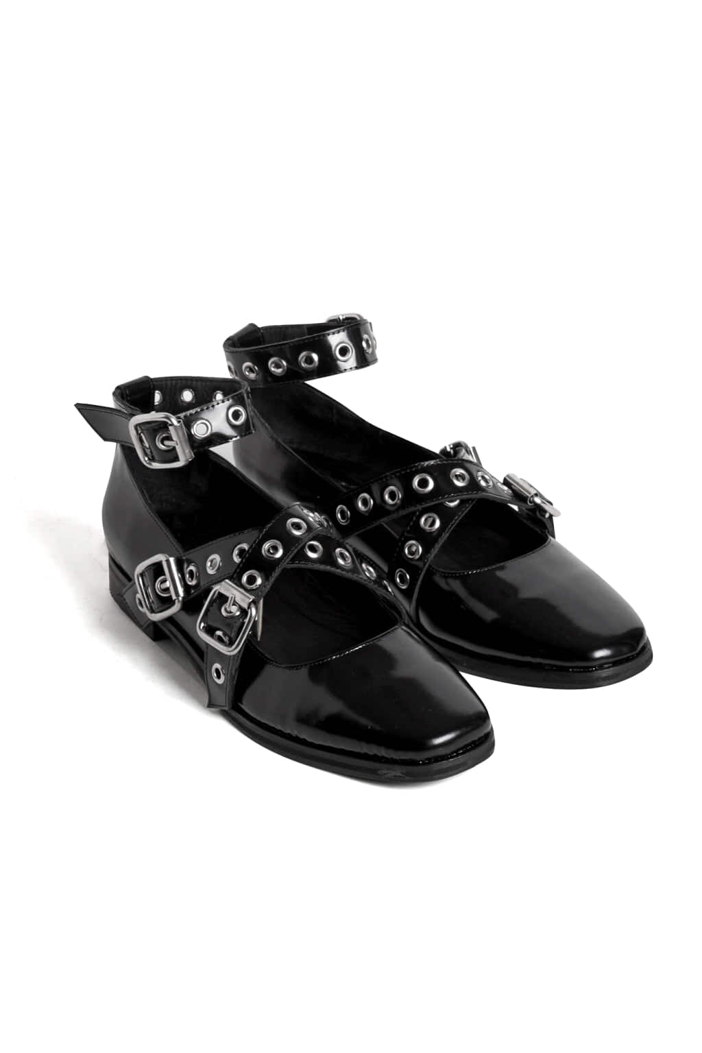 Chatas de cuero con tiras cruzadas con tachas.