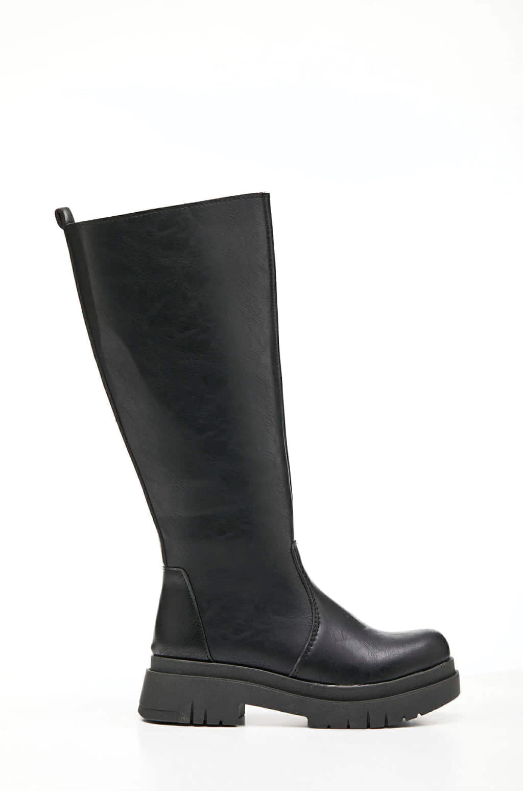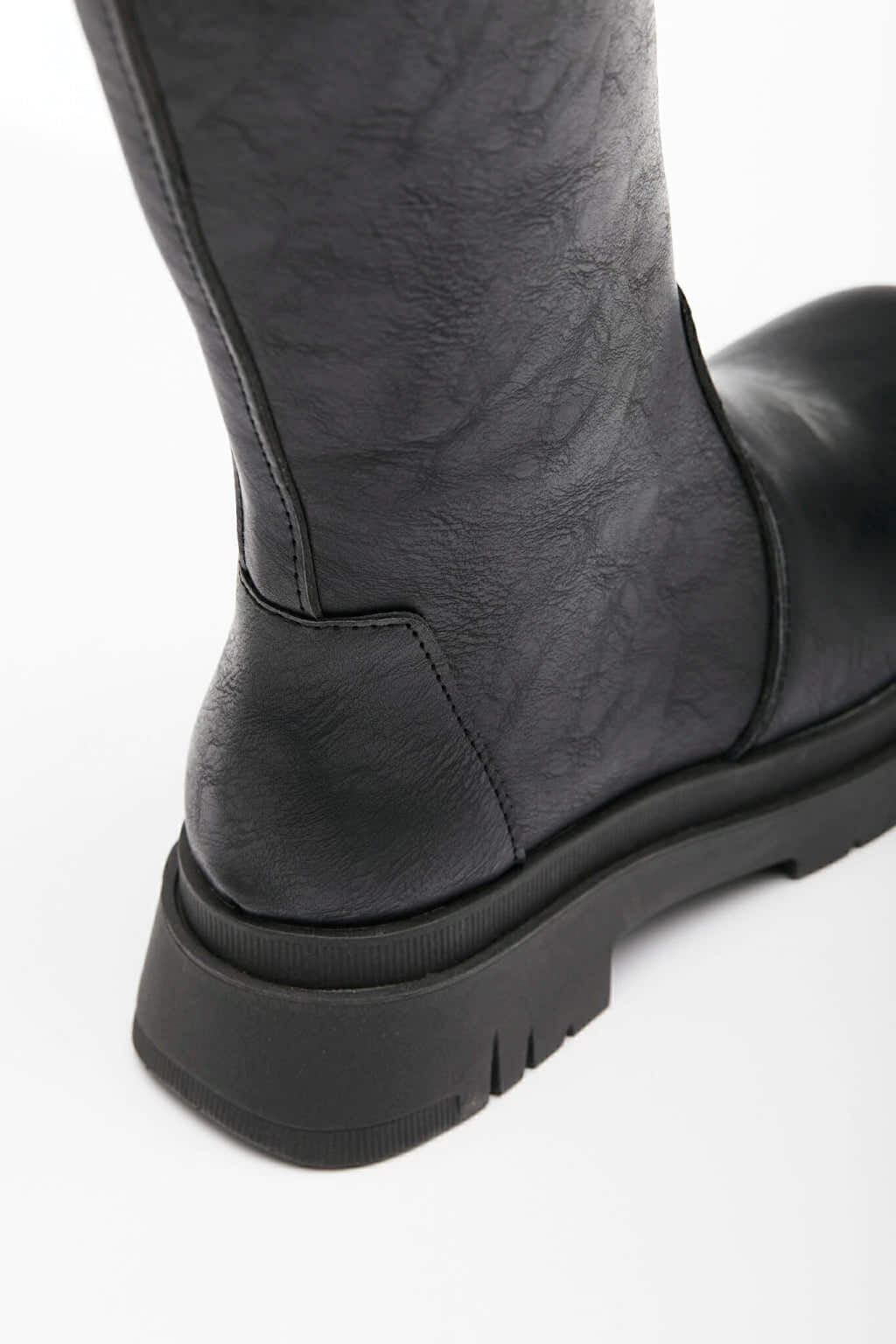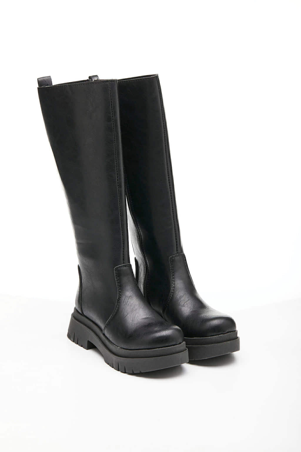 Botas de ecocuero con cierre. Altura de caña 36 cm, alto de base 5 cm. Industria Argentina.