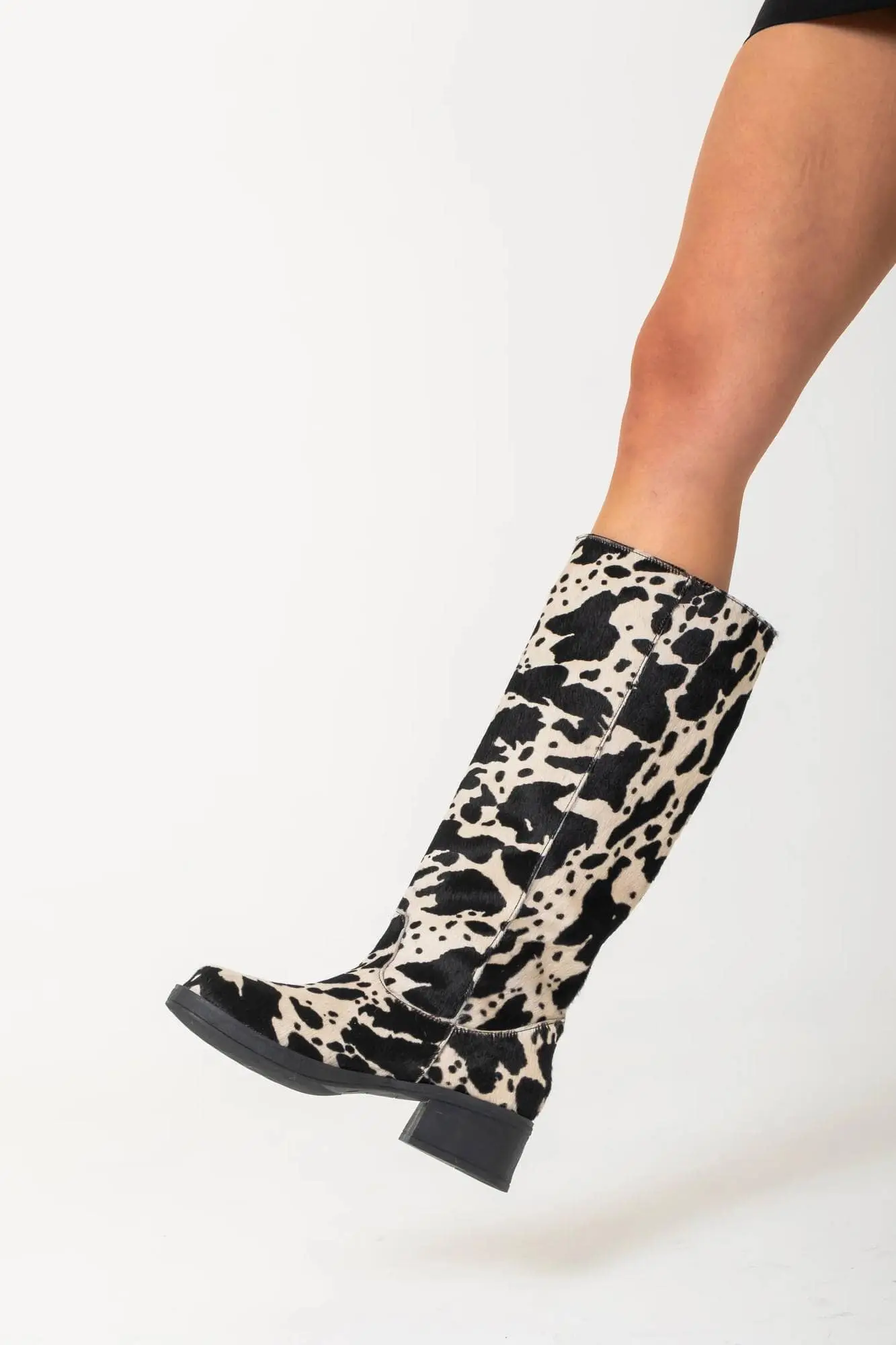 Borcego de cuero con taco de 4cm. Alto de caña de 37 cm, circunferencia 60cm. Industria Argentina.