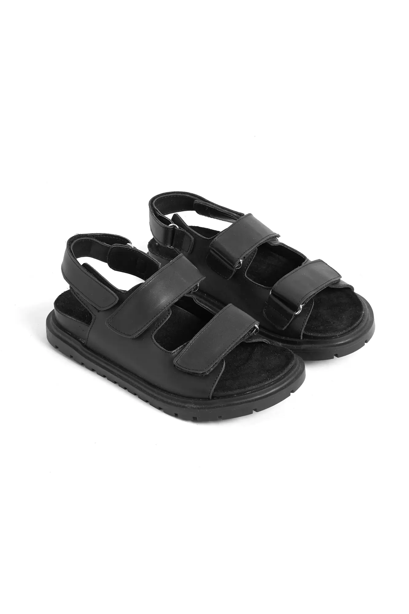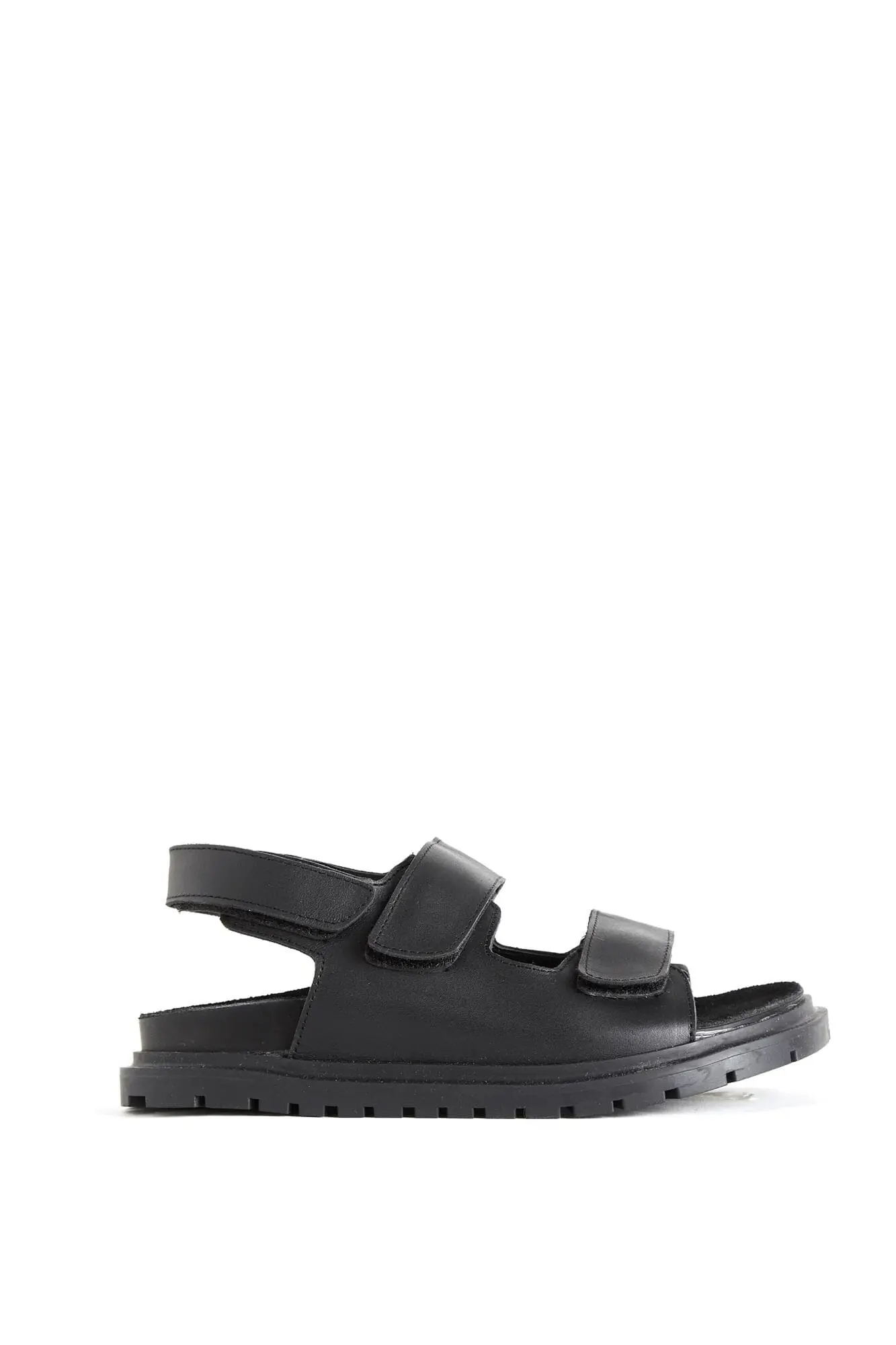 Sandalias de cuero tipo Birken con dos tiras con velcro. Industria Argentina.